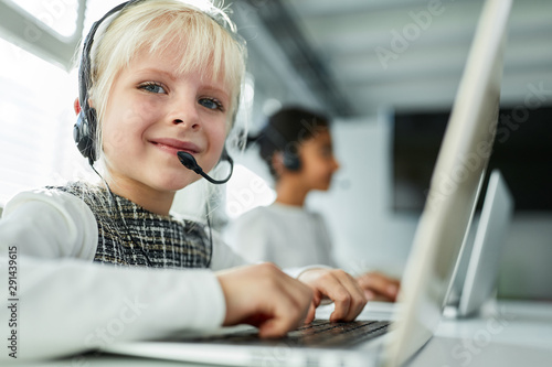 Afrikanischer Junge ballt die Fäuste am Laptop
