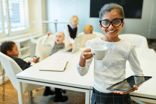 Afrikanisches Mädchen mit Brille und Tablet Computer