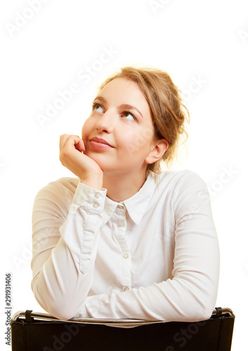 Junge Frau beim Nachdenken schaut hoffnungsvoll