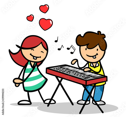 Gruppe Kinder in Reihe mit Musikinstrumenten in Musikschule