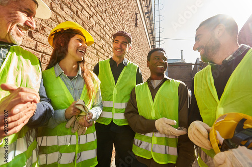 Logistik Arbeiter in einer Pause beim Smalltalk