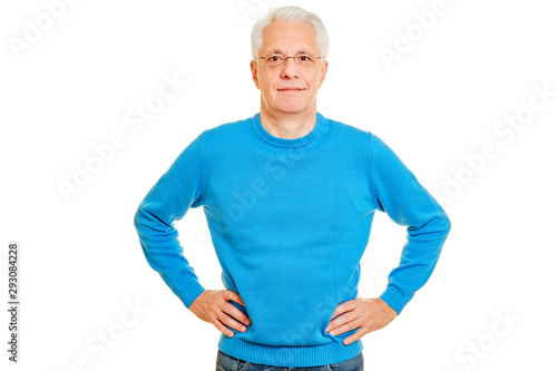 Senior Mann frontal mit Händen in der Hüfte
