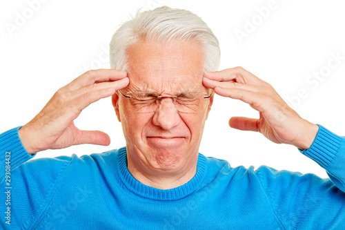 Mann mit Magenschmerzen hält Hände auf Bauch