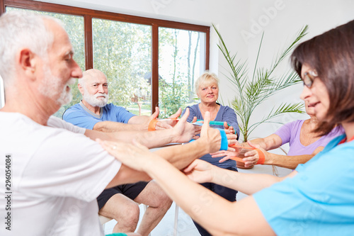 Senioren Gruppe mit Kursleiter im Fitness Workout