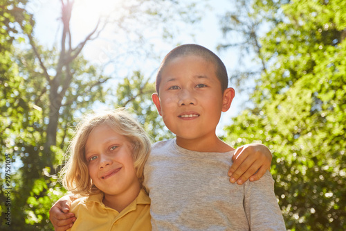 Asiatischer Junge und ein europäischer Freund