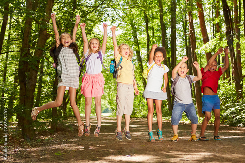 Gruppe Kinder beim Rennen in der Natur im Sommer