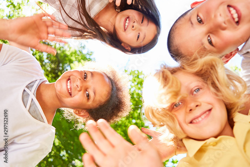 Gruppe Kinder beim Rennen in der Natur im Sommer