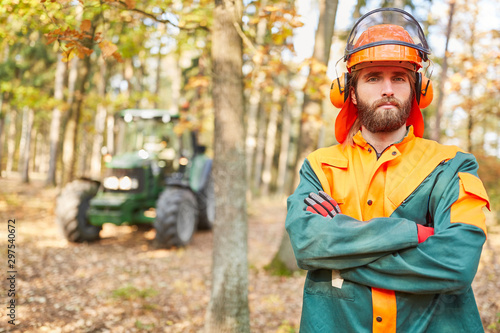 Waldarbeiter oder Forstwirt in Schutzkleidung