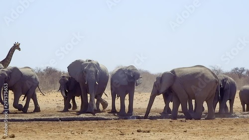 Stunning sunset over an African savannah with elephants, giraffes, and zebras