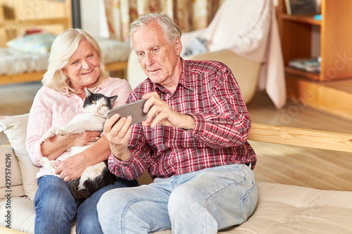 Senioren Paar im Ruhestand beim Karten spielen auf dem Sofa