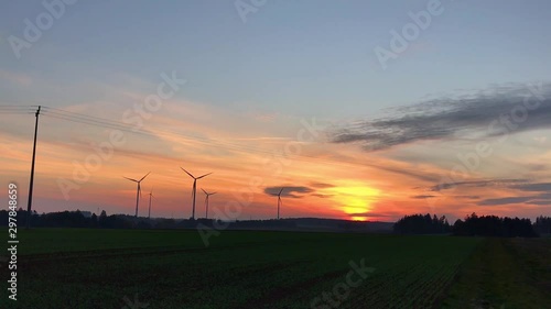 Sunset with sun in colorful sky over hill on fields (Full HD)