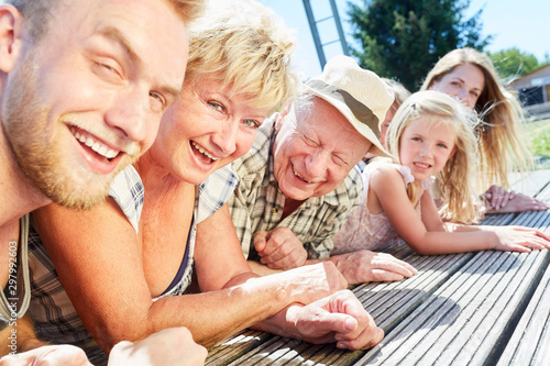 Familie zeigt bunte Zeichnung mit Eigenheim