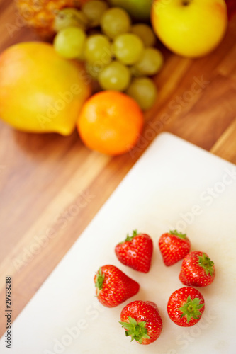 Erdbeeren auf Küchenbrett