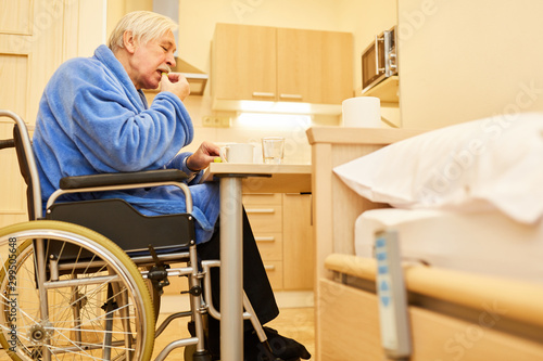 Senior Mann nimmt Tabletten in Seniorenwohnung