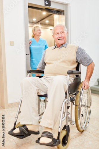 Pflegekraft albert mit einem Senior im Rollstuhl