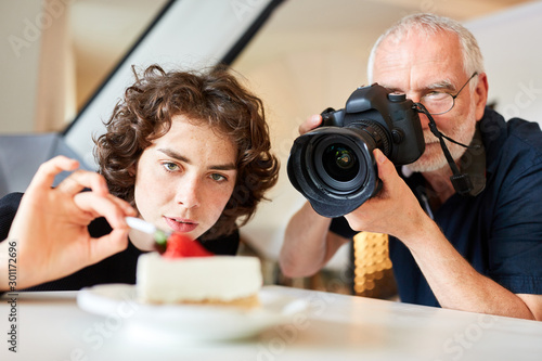 Food-Stylistin bereitet Fotoshooting mit Torte vor