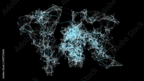 Digital map of Western Europe in blue with glowing dots concept for networks