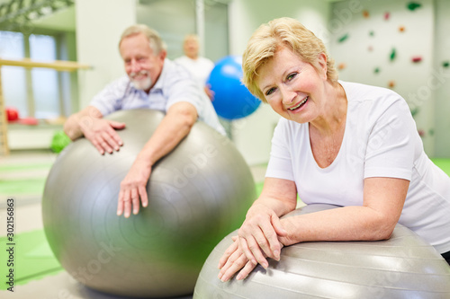 Trainer und Senior Frau mit einem kleinen Gymnastikball