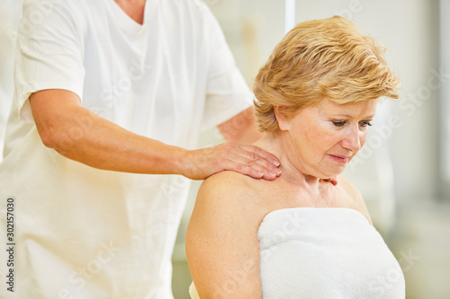 Senior patient gets a neck massage