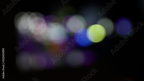 Defocused colorful blinking lights of moving carousel at night