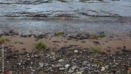 Tilt shot of calm waves on the shore of Graal-Müritz, Germany, Baltic Sea beach video.