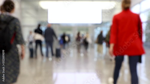 Blurred hallway of a convention center with crowd of people