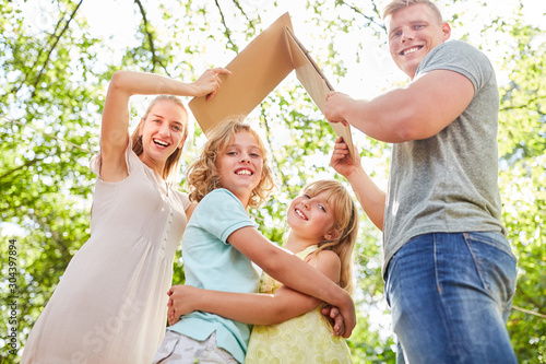 Eltern halten schützendes Dach über Kinder