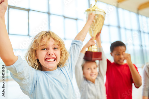 Jubelnde Kinder als Sieger nach Wettbewerb