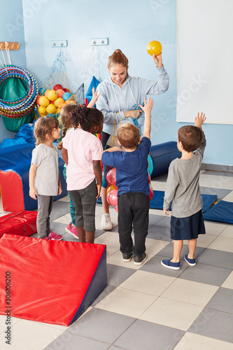 Glückliche Kinder beim Kinderturnen in Sporthalle