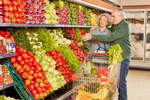 Einkaufswagen voll mit gesunden Lebensmitteln