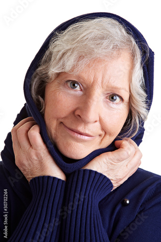 Seniorin mit Kapuzenschal