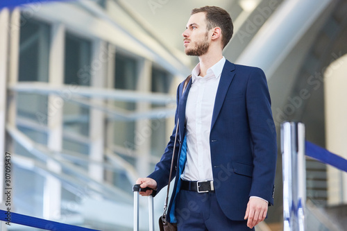 Geschäftsmann mit Smartphone am Flughafen Terminal
