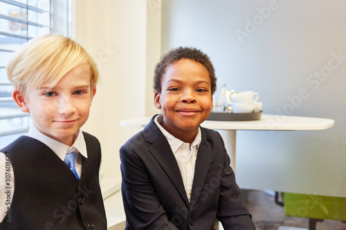 Zwei multikulturelle Jungen als Geschäftsleute