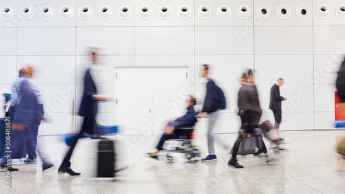 Einige Geschäftsleute gehen durch Halle einer Messe