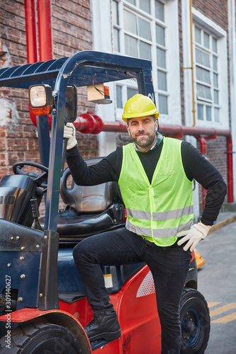 Staplerfahrer beim Gabelstapler fahren in einer Fabrik