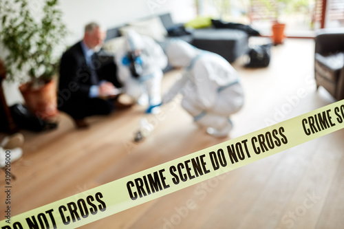 Kriminaltechniker der Polizei untersuchen Tatort