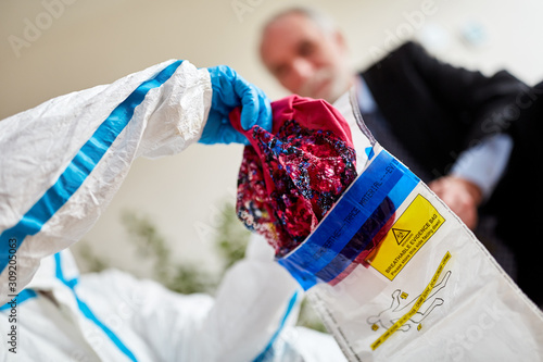 Polizei mit Kriminaltechnik am Tatort nach Verbrechen