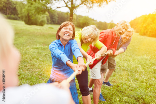 Vitales Senioren Team beim Seil ziehen