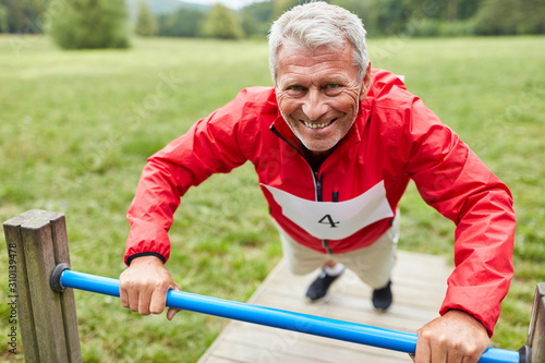 Aktiver Senior Mann auf dem Trimm dich Pfad
