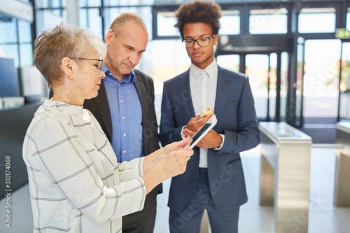 Business Leute schauen auf Tablet Computer
