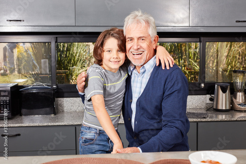 Fröhlicher Enkelsohn zwischen Oma und Opa
