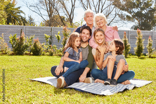 Familie mit zwei Kindern mit Dach über dem Kopf