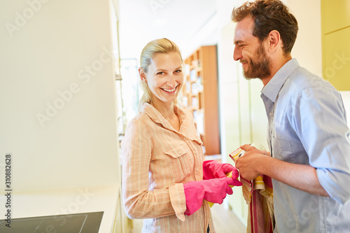 Junges Paar beim Frühjahrsputz im Wohnzimmer
