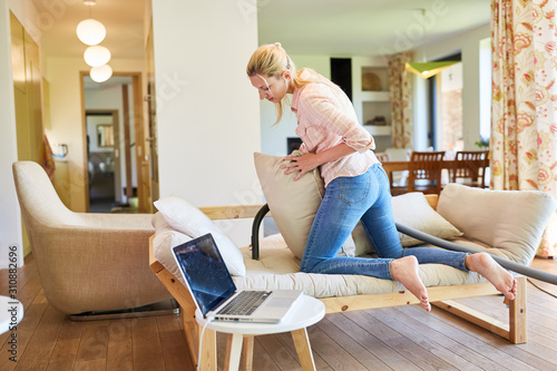 Frau entfernt mit Salz und Schwamm Rotweinflecken