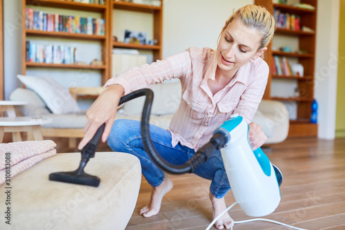Hausfrau mit Zitrone beim reinigen einer Schüssel
