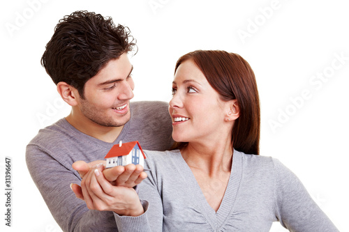 Junge Geschäftsfrau und Handwerker vor Tafel mit Muskel Armen