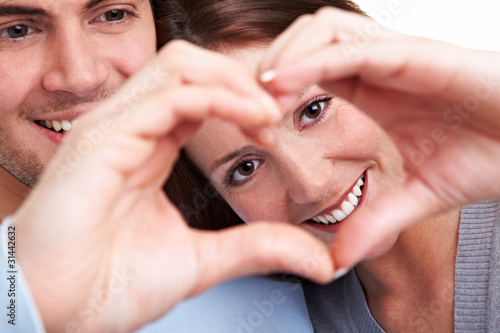Paar formt Herz mit Händen
