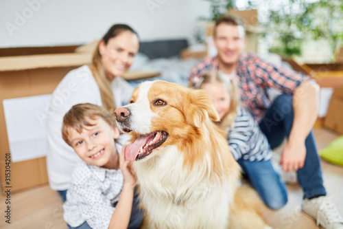 Family dog is sitting in new home