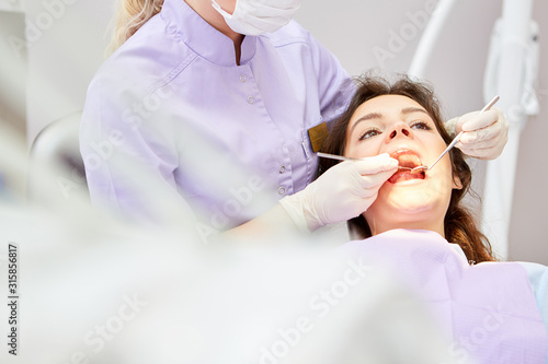 Zahnarzt macht eine Karies Vorsorge Untersuchung