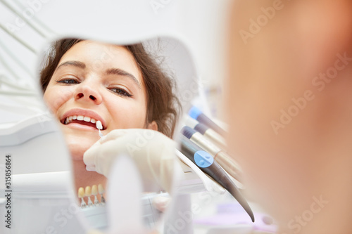 Lächelnde Frau bei der kosmetischen Zahnaufhellung